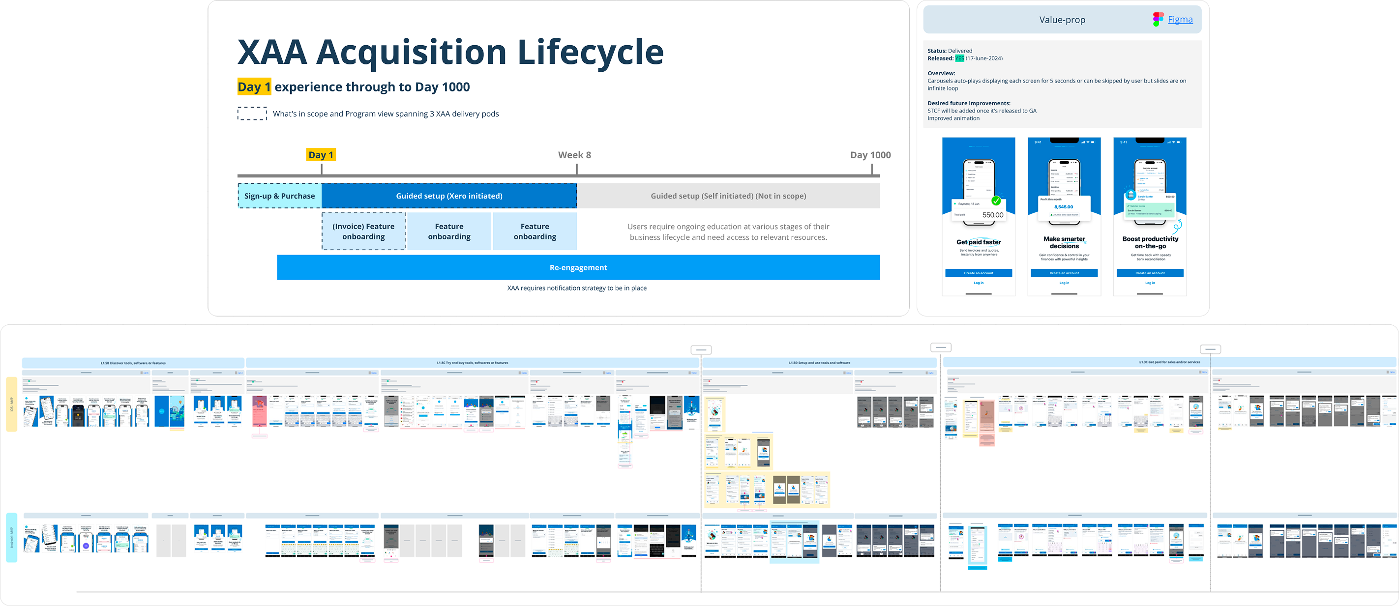 The previous XAA acquisition funnel prioritised speed to market over design maturity. This trade-off led to an experience that was technically constrained and difficult to evolve—introducing friction, reducing conversion — a 94% drop off, and undermining user confidence in the Xero brand. This was an opportunity to redefine how users discovered and adopted XAA by creating an onboarding experience that was effortless, engaging, and distinctly Xero. By improving clarity, delight, and usability, we aimed to increase signups, accelerate onboarding, and boost first-task completion—reducing time to value for customers.