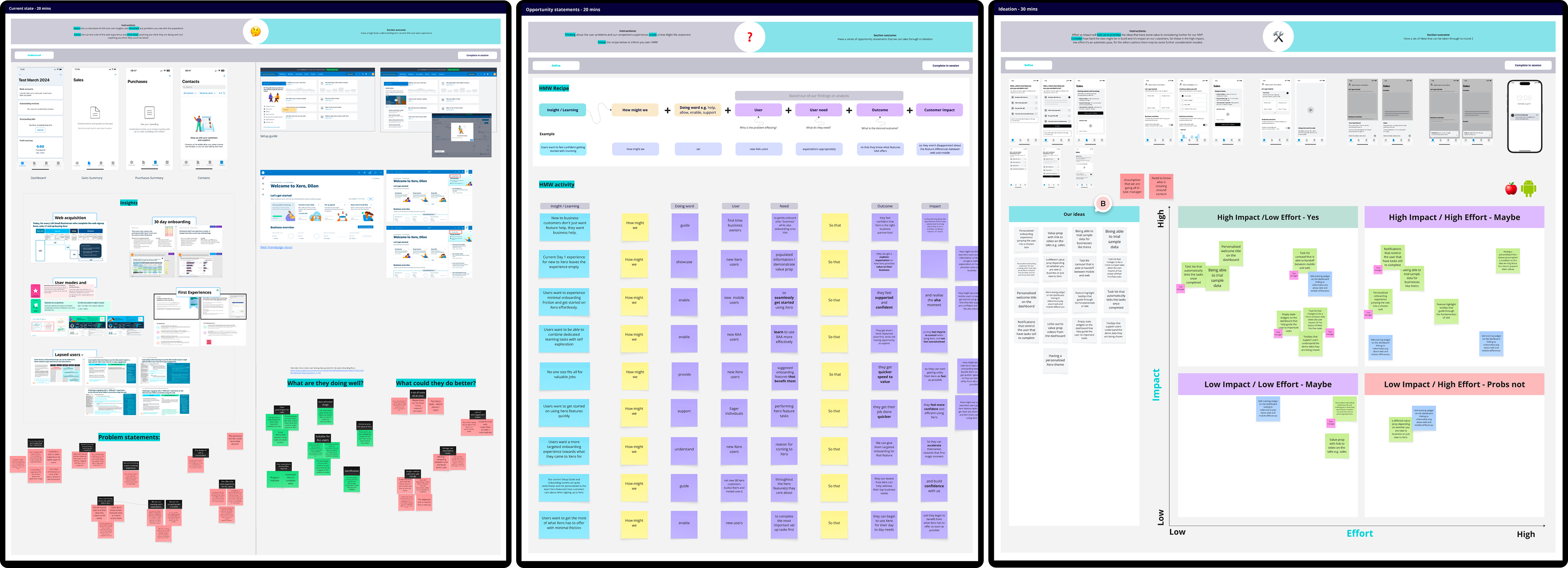 Drawing on Design Sprint methodology, I ran a series of focused mini-sessions to explore the problems in depth. While the team had initial ideas for their acquisition areas, I first mapped the current experience, uncovering customer pain points, goals, and risks. These workshops accelerated progress—bringing technical, design, analytics, and product experts together in the same room reduced the need for endless meetings and ensured alignment from the start.
